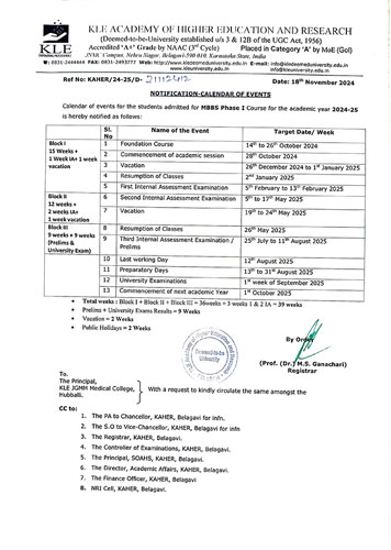 CALENDER OF EVENTS MBBS
