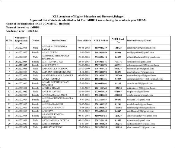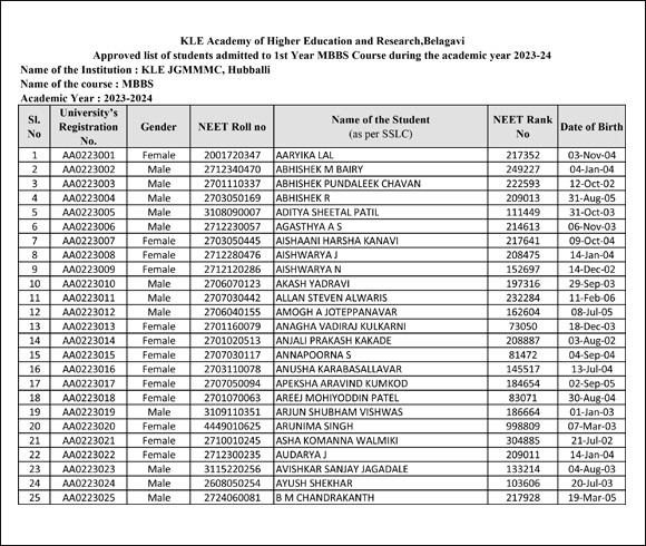 MBBS Rank Wise Students List MBBS 2024-25 Batch MBBS 2023-24 Batch MBBS 2022-23 Batch MBBS 2021-22 Batch