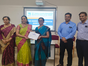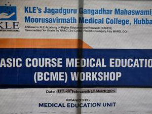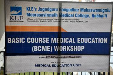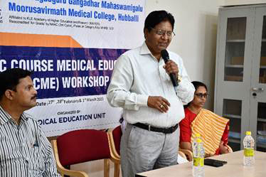 6. A workshop on Basic Course in Medical Education (BCME) was organized and conducted by Medical Education Unit (MEU) JGMMMC at JGMM Medical College Hubballi between 27th Feb 2025 to 01st March 2025. The event was successfully conducted under the Observer ship of NMC appointed coordinator Dr. Dipti Kadeangadi Madam.