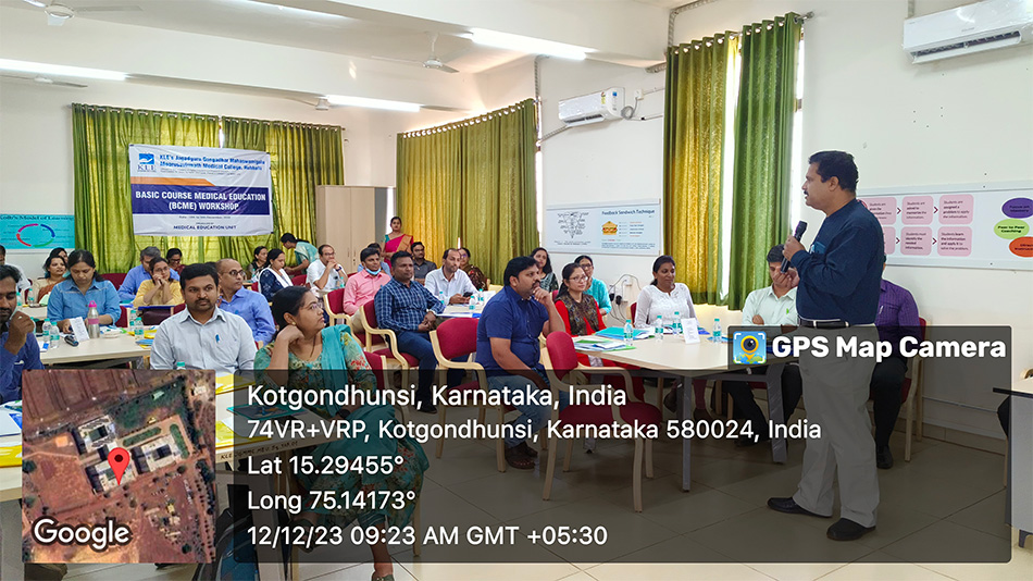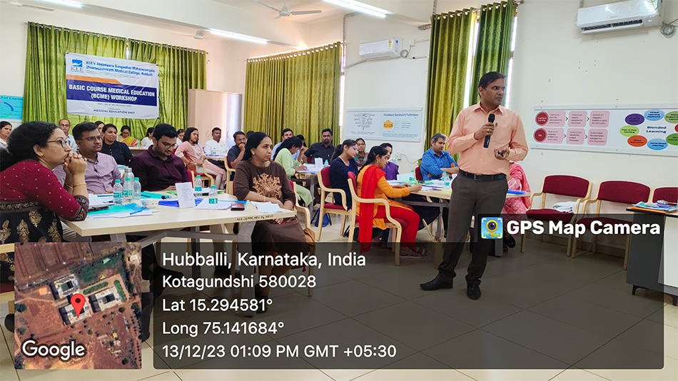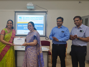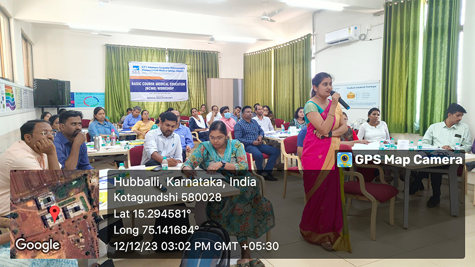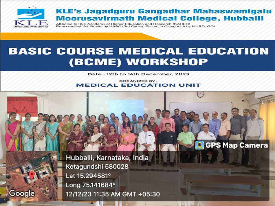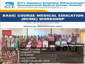 2. "A workshop on Basic Course in Medical Education (BCME) was organized and conducted by Medical Education Unit (MEU) JGMMMC at JGMM Medical College Hubballi between 12th to 14th December 2023. The event was successfully conducted under the Observer ship of NMC appointed coordinator Dr. Radhika Sherkane madam."