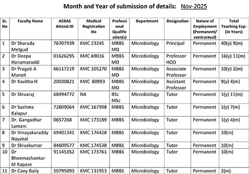 We the faculty of Clinical Microbiology Department strive and emphasize on infection control practices and conduct antibiotic stewardship program to curb the pandemic of antibiotic resistance next to covid-19, under the esteemed guidance of Dr. Sharada C Metgud Professor and Head, department of clinical microbiology.