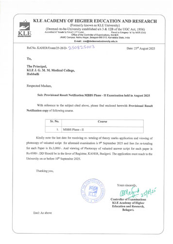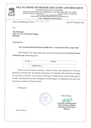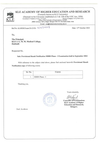 University Exam Notification for MBBS Phase III Part I November 2025 Click here University Supplementary Exam Notification for MBBS Phase I October 2025 Click here Deekharambh - Foundation Course for 1st MBBS Students 2025-26 Batch Click here University Supplementary Exam Notification for MBBS Phase II September 2025 Click here Admission Procedure for KEA Seats 2026 Click here Admission Procedure for MCC Seats 2026 Click here University Exam Notification for MBBS Phase I September 2025 Click here University Exam Notification for MBBS Phase II August 2025 Click here